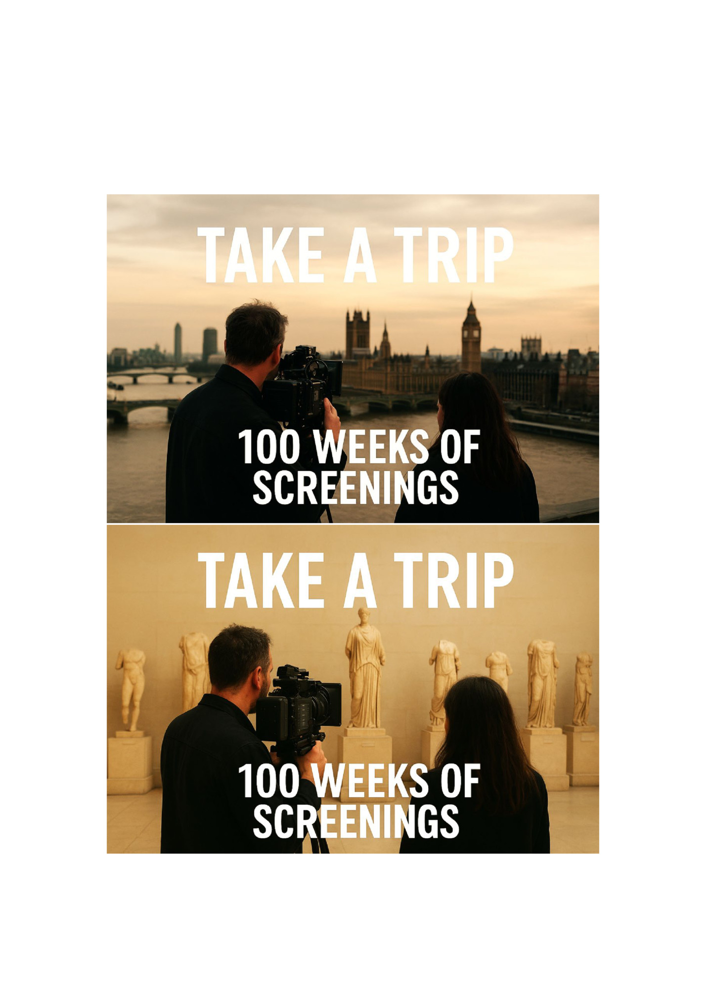 testimony that cinema can still create a sustained dialogue with its audience. A Rare Phenomenon In the history of world cinema, few films have maintained such long and uninterrupted theatrical runs. Take a Trip stands as a global exception, recalling an era when films remained on screen not through marketing force but through audience demand. The persistence of this work in a single theater reaffirms that there is still a hunger for cinema of substance and reflection. Beyond Numbers The milestone of 100 weeks is more than a statistic. It is a testament to endurance, to the resilience of contemplative cinema in a world of fleeting images. It shows that audiences still seek works that are not consumed but experienced, not explained but pondered. Take a Trip is such a work. It does not transport us to places—it transports us within ourselves. It does not conclude, but always begins anew. And perhaps, in the end, it is not just a film at all, but a way of living cinema differently. Director of Photography: George Devon, Dionysios Dimas, Christos N. Karakasis. Music Composition: Grigoris Yarelis, Assistant Director – Sound Recording: Nikos Psaltakis, Production Assistant: Maria Kappa, Texts – Narration: Vasiliki Kappa Script – Direction – Editing: Christos N. Karakasis, Countries of Production: UK – Greece, Duration: 30 min – Format: 4K-DCP Facebook page Trailer Take a Trip IMDb Production: Kouinta Film Production Company Partner – Co-producer – Distribution: Tickets Tickets Company Film Distribution: New Star Art Cinema 33 Stavropoulou St., Athens Tel: +30 210 864 0054