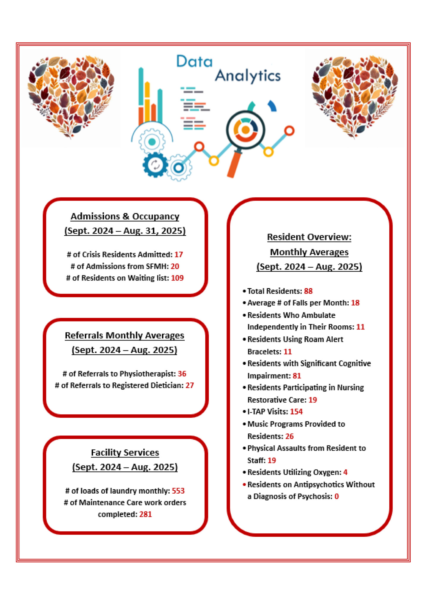 Introductory Report – CEO & Board Chair As we open the 50th Annual General Meeting of Valley Manor (VM), the Board of Directors and the Chief Executive Officer extend our deepest appreciation to all staff and volunteers. Each member of our team brings a unique set of skills which, together, ensure the highest level of care for our residents. The dedication and compassion demonstrated daily by both long-serving staff, some of whom have been with us for more than 25 years, and newer members are truly inspiring. Challenges and Staffing The past year has not been without challenges, including managing outbreaks and operating within an aging infrastructure. One of the most persistent challenges continues to be the recruitment and retention of qualified staff within a very limited pool of local healthcare providers. To meet resident care needs, Valley Manor has relied on contracted Registered Nurses, Registered Practical Nurses, and Personal Support Workers. While essential, this reliance adds significant financial pressures due to agency fees and the need to provide housing for out-of-area workers. Recruitment efforts are also constrained by limited local housing and competition for scarce skilled workers. Despite these hurdles, Valley Manor remains committed to rigorous recruitment strategies. These include online, print, and in-person campaigns as well as international recruitment initiatives. Our efforts support the provincial target of achieving an average of four hours of direct care per resident per day. As of August, VM reported 3.59 hours—an encouraging upward trend toward this goal. Occupancy and Redevelopment With the exception of temporary outbreak restrictions, Valley Manor continues to operate at full occupancy, with a waitlist of more than 100 individuals. Redevelopment remains a priority. A new facility would increase resident capacity from 90 to 96 beds, improve infection control standards, accommodate rising resident acuity, and support staff workflow. Following strong advocacy by Advantage Ontario, Minister of Long-Term Care Natalia Kusendova-Bashta, MPP Billy Denault, and rural LTC partners including VM, the Ministry of Long-Term Care has revised its funding formula to better reflect the fundraising limitations of small communities. While this policy shift is positive, Valley Manor continues to carefully assess the financial implications of a new build amid significant increases in construction costs. Redevelopment has remained a key priority of the Strategic Plan for over a decade, and although progress was delayed by events such as the COVID-19 pandemic, the vision remains. VM’s license