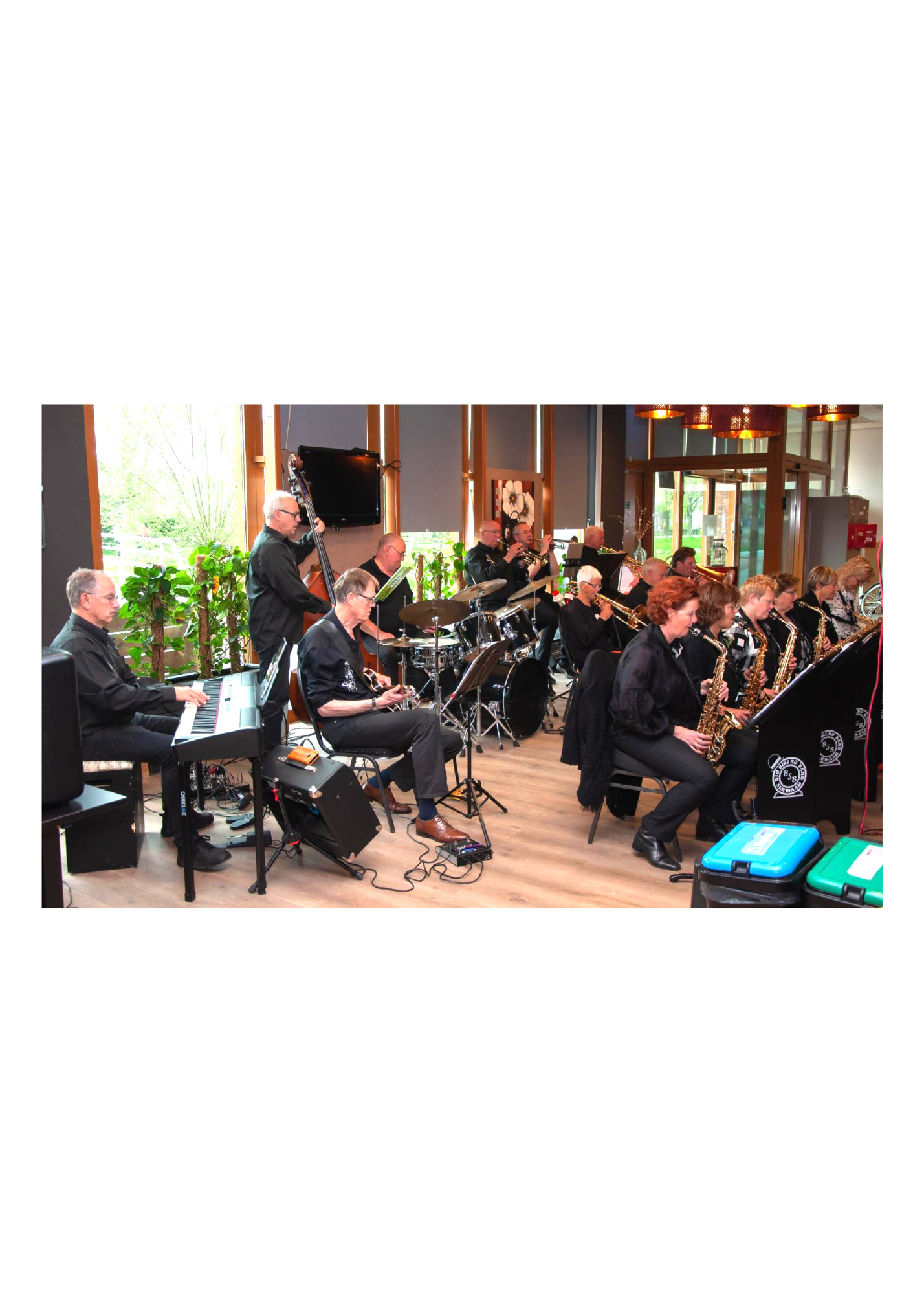ruim 20 actieve leden plus onze dirigent. Swingen is en blijft het devies van deze Big band. Bekende en minder bekende muziekstukken van de groten op Big band gebied, zoals Duke Ellington, Count Basie, Glenn Miller en vele andere componisten/arrangeurs staan op de lessenaar.