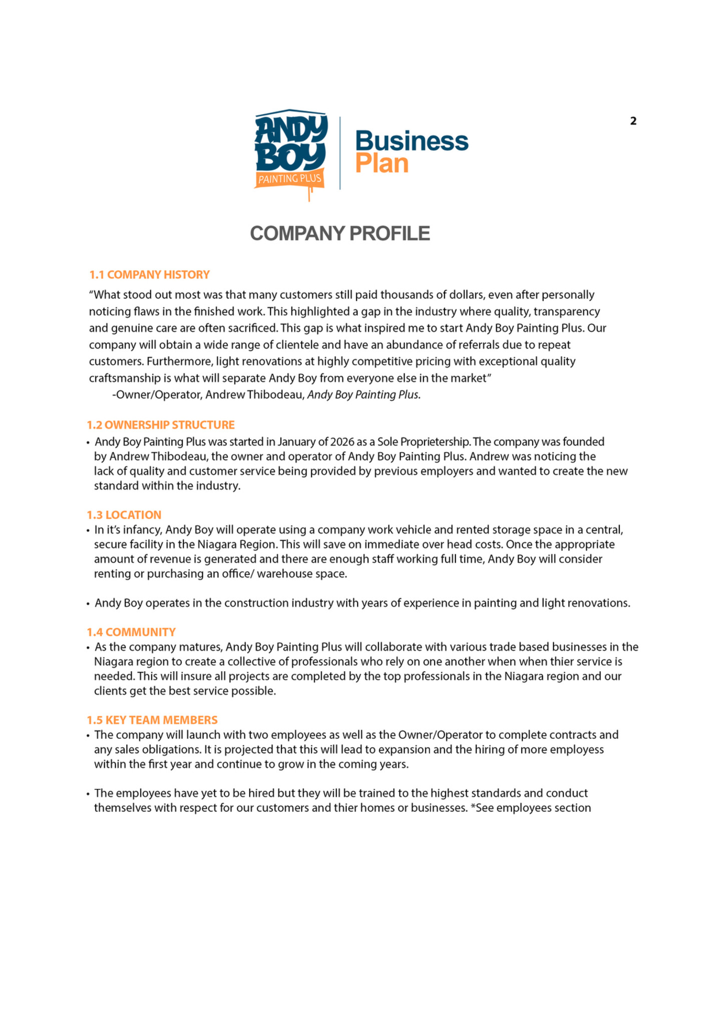 Andy Boy Painting Plus: Business Plan