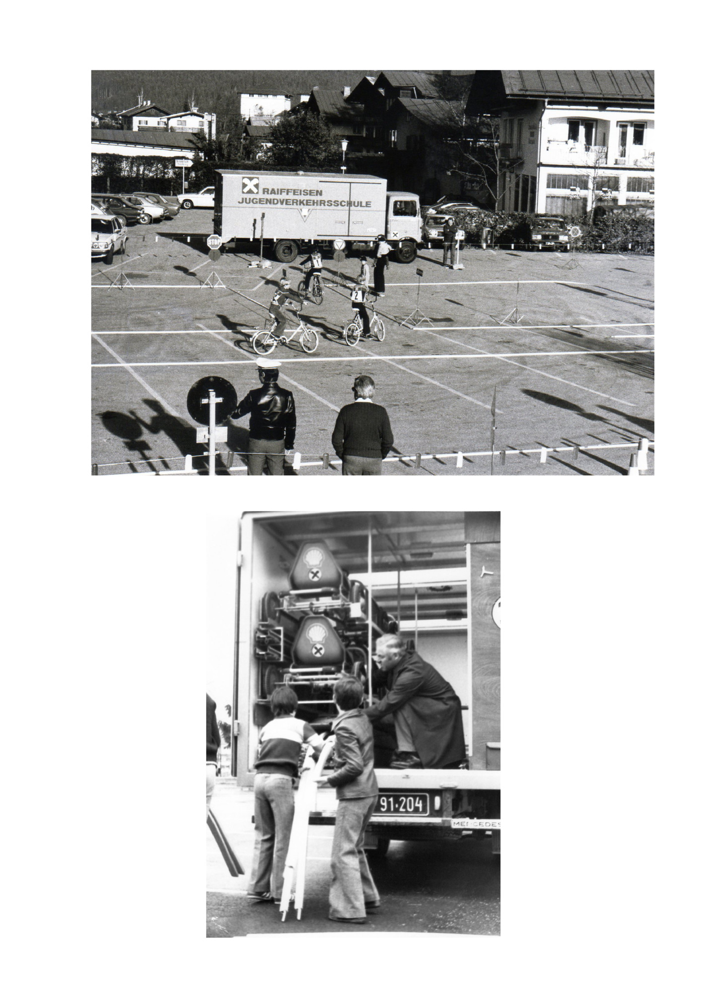 Auf Initiative des Kuratoriums für Verkehrssicherheit – Landesstelle Tirol unter Dr. M. Gheri wurde 1976 in Zusammenarbeit mit dem Landesschulrat, der Landesregierung, der Gendarmerie – Verkehrsabteilung und den Tiroler Raiffeisenbanken die MOBILE JUGENDVERKEHRSSCHULE TIROL ins Leben gerufen. Dies war eine Antwort auf die alarmierenden Unfallziffern von jährlich 180 im Straßenverkehr tödlich verunglückten Kindern in Österreich in den 1970er Jahren. Ziel ist es, die Tiroler Kinder der vierten Klasse Volksschule in den Landbezirken durch praktische Übungen am Fahrrad auf den Straßenverkehr vorzubereiten. Sie können dann nach einer theoretischen Prüfung in der Schule die FREIWILLIGE RADFAHRPRÜFUNG ablegen. Dadurch sind sie schon mit 10 Jahren berechtigt, mit dem Fahrrad auf der Straße zu fahren. Die Projektpartner entschieden sich damals für die mobile Form eines Verkehrsgartens, da es zwar einen stationären Verkehrsgarten in Innsbruck Wilten gab, dieser aber aus verschiedenen Gründen der einzige blieb. Die Innsbrucker Kinder machen dort bis heute ihre Übungen und Prüfungen, organisiert von der Polizeiinspektion Wilten – HERZLICHEN DANK dafür! In Deutschland gab es zu dieser Zeit schon 200 Mobile Jugendverkehrsschulen, die sich gut bewährten. Polizeibeamte fuhren mit LKW zu den Schulen, bauten dort einen Verkehrsgarten mit Fahrbahnmarkierungen, Verkehrsschildern und z.T. Ampelanlagen in den Schulhöfen auf, luden die mitgebrachten Fahrräder aus und der praktische Radfahrunterricht konnte beginnen. Von Beginn an sponserten die Tiroler Raiffeisenbanken, heute mit der Marke RAIFFEISEN CLUB, die Fahrzeuge für die Mobile Jugendverkehrsschule Tirol. Der damalige Generaldirektor Dr. Günther Schlenck und der damalige Leiter des Raiffeisen Werbevereins Dr. Fritz Hackl unterstützten das Projekt voll und ganz unter dem Motto: Unseren Kindern – volle Sicherheit. Das ist bis heute so geblieben. Die Mobile Jugendverkehrsschule ist derzeit mit dem 5. bzw. 6. vom Raiffeisen Club gesponserten 7,5 Tonnen LKW unterwegs. Im Jahr 2014 wurden die LKW vom Raiffeisen Club unter der Geschäftsführung von Mag. Christine Hofer neu lackiert und beschriftet. Die Fahrzeuge werden vom Landesbauhof fast seit Beginn an gewartet, repariert und betankt. Der erste Verkehrserziehungs-LKW, besetzt mit den Gendarmeriebeamten Ferdinand Bohrn und Johann Schroll, war ab Oktober 1976 unterwegs. Nach deutschem Vorbild wurden verschiedene Schulhöfe angefahren und die praktischen Übungen mit dem Fahrrad vorgenommen. Vorerst nur in 45 Minuten-Einheiten. Da es durchwegs sehr positive Rückmeldungen von allen Seiten gab, wurde von den Tiroler Raiffeisenbanken im Frühjahr 1978 ein zweiter LKW gekauft und der Mobilen Jugendverkehrsschule zur Verfügung gestellt. Die LKW waren nun nur mehr mit einem Verkehrserzieher der Gendarmerie besetzt, der von den örtlichen Gendarmerieinspektionen tatkräftig unterstützt wurde. 100 Prozent aller Viertklassler in den Landbezirken Tirols konnten nun nach zwei Übungen von jeweils 100 Minuten im Mai und Juni zur praktischen Radfahrprüfung antreten.