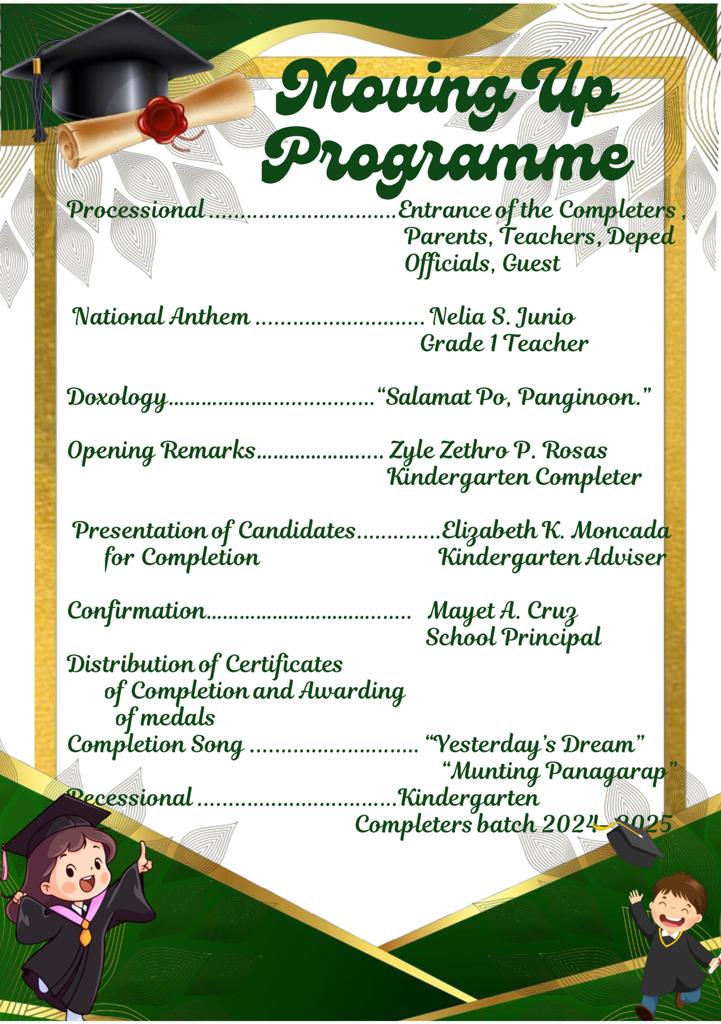 SCHOOL April 15, 2025 (Tuesday) 1:00 pm Policarpo Mini-Gym