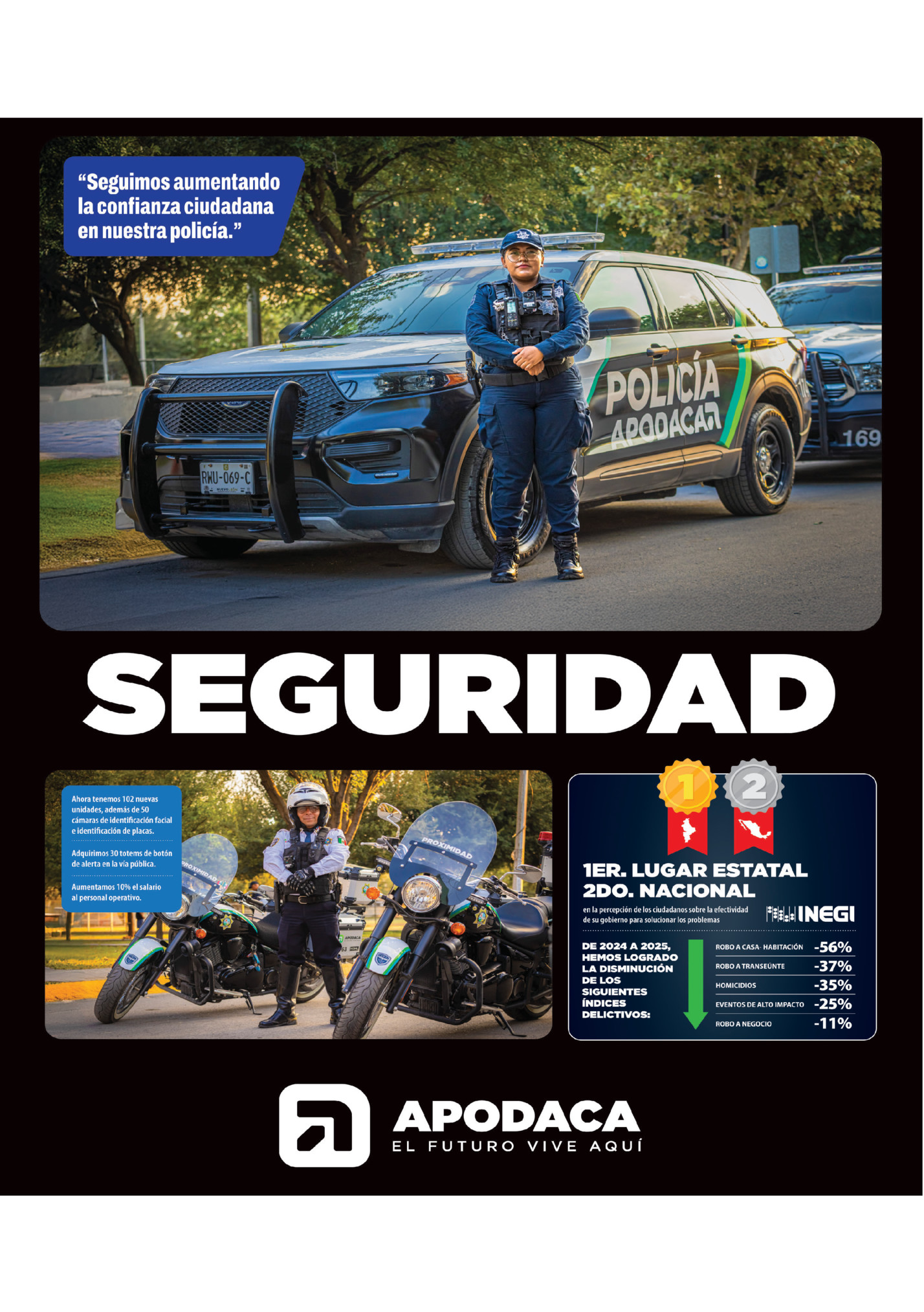 segunda quincena de diciembre de 2025 / PAGINA 5 Presencia Total en Autopistas • Aproximadamente 400 elementos desplegados. • Más de 100 unidades operativas. • Modalidad de vigilancia 24/7 por circuitos continuos. • Apoyo de divisiones, Territorial, Blindada, Aérea, Medicina Táctica. • Coordinación con otras corporaciones, Guardia Nacional y policías municipales. • Principales tramos vigilados, La Gloria–Colombia, autopista y carretera libre a Reynosa, Miguel Alemán y Anáhuac. • Incidentes más atendidos fallas mecánicas y hechos de tránsito. • Canales de emergencia 911 y contacto directo con unidades en ruta. Fuerza Civil mantiene bajo vigilancia las carretera. de Nuevo León. Nuevo León blinda sus carreteras: Presencia total garantiza seguridad 24/7 a paisanos, turistas y ciudadanos E n Nuevo León, la seguridad en las carreteras es prioridad. Bajo el mando de Gerardo Escamilla Vargas y con el respaldo absoluto del Gobernador Samuel Alejandro García Sepúlveda, la Nueva Fuerza Civil refuerza de manera permanente la autopista de cuota a Reynosa con el operativo Presencia Total. Este contingente en caravana, garantiza acompañamiento, vigilancia preventiva y atención inmediata para paisanos, turistas, transportistas y ciudadanos que circulan por el estado. Como lo explica el Subinspector Elizondo, titular de la División Caminos, “el objetivo primordial es brindar seguridad a todos los viajeros las 24 horas, para estar presentes ante cualquier situación que se necesite”. Despliegue día y noche en puntos estratégicos Las acciones contemplan patrullajes terrestres, puntos móviles de supervisión, acompañamiento a usuarios, coordinación aérea y apoyo en emergencias. Todo esto se realiza con una fuerza activa altamente capacitada. El Subinspector detalla que trabajan “24 horas por circuitos en las áreas donde hemos tenido mayor incidencia, para brindar la mayor seguridad a todos los paseantes del estado”. A la División Caminos se suman otras áreas operativas de la institución. “Colaboramos con la División Territorial, la División Blindada, la División Aérea y la de Medicina Táctica”, dijo el mando, fortaleciendo así la capacidad de respuesta en tiempo real. Vigilancia aérea cuando más se necesita La División Aérea incrementa vuelos en horarios de alta movilidad para reforzar vigilancia y atender emergencias desde el aire. “Cuando haya más viajeros”, explicó el Subinspector, “la división aérea estará en el aire para apoyar en tiempo y forma”. Esta coordinación permite una cobertura integral por tierra y aire, especialmente en zonas clave como La Gloria–Colombia, autopistas y carreteras libres hacia Reynosa, Miguel Alemán y Anáhuac. Trabajo conjunto que da resultados Gracias a la coordinación con Guardia Nacional y policías municipales, la vigilancia se extiende y fortalece en todo el corredor carretero. “Ya nos encontramos plenamente coordinados para llevar a cabo recorridos conjuntos o por separado y dar un mejor servicio a la ciudadanía”, aclara. El operativo se enfoca en prevenir delitos como robo a viajeros, asaltos y situaciones de riesgo. Los incidentes más atendidos han sido fallas mecánicas y hechos de tránsito, donde los elementos han brindado respuesta inmediata. Acompañamiento y atención directa al ciudadano Elementos de Fuerza Civil mantienen las carreteras bisn resgiardadas. Fuerza Civil también impulsa una fuerte campaña preventiva para automovilistas, recordando la importancia de viajar con vehículos en buenas condiciones. “Muchas veces apoyamos para pedir a los automovilistas que respeten las señales de velocidad y revisen sus vehículos antes de viajar”, resume el Subinspector. Y reafirma el compromiso hacia todos los visitantes y paisanos que recorren el estado. Fuertemente armados, los elementos policiacos vigilan las carreteras. “Que se sientan seguros, porque vamos a estar cuidando las carreteras las 24 horas y si llegan a tener una problemática, vamos a estar para servirles y ayudarles”. La estrategia de Presencia Total responde al mandato de mantener los caminos de Nuevo León libres de grupos delictivos, prevenir hechos de violencia y asegurar la movilidad estatal y nacional. Fuerza Civil es hoy una institución moderna, disciplinada y cercana. Cada operativo es una oportunidad para demostrar a la ciudadanía que estamos donde debemos estar: en el territorio, con resultados y con absoluta determinación. Con acciones firmes y presencia permanente, Nuevo León refrenda su compromiso con la movilidad segura, el orden y la tranquilidad de quienes transitan por sus carreteras.