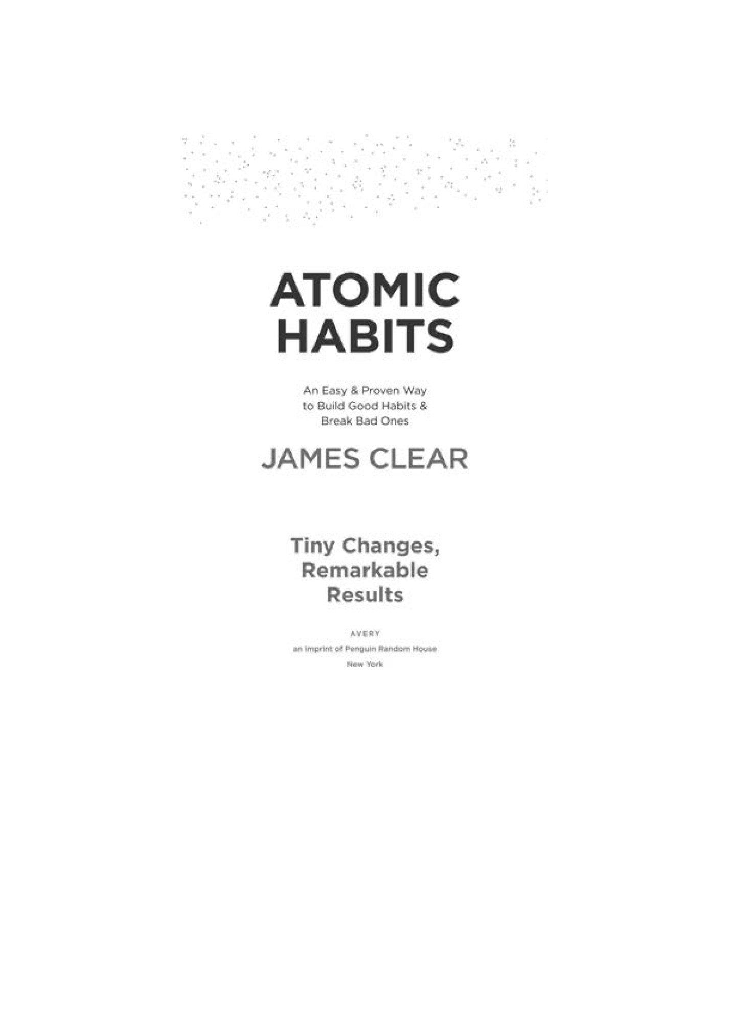 Title Page Copyright Epigraph Introduction: My Story The Fundamentals Why Tiny Changes Make a Big Difference 1 The Surprising Power of Atomic Habits 2 How Your Habits Shape Your Identity (and Vice Versa) 3 How to Build Better Habits in 4 Simple Steps The 1st Law Make It Obvious 4 The Man Who Didn’t Look Right 5 The Best Way to Start a New Habit 6 Motivation Is Overrated; Environment Often Matters More 7 The Secret to Self-Control The 2nd Law Make It Attractive 8 How to Make a Habit Irresistible 9 The Role of Family and Friends in Shaping Your Habits 10 How to Find and Fix the Causes of Your Bad Habits The 3rd Law Make It Easy 11 Walk Slowly, but Never Backward 12 The Law of Least Effort 13 How to Stop Procrastinating by Using the Two-Minute Rule 14 How to Make Good Habits Inevitable and Bad Habits Impossible