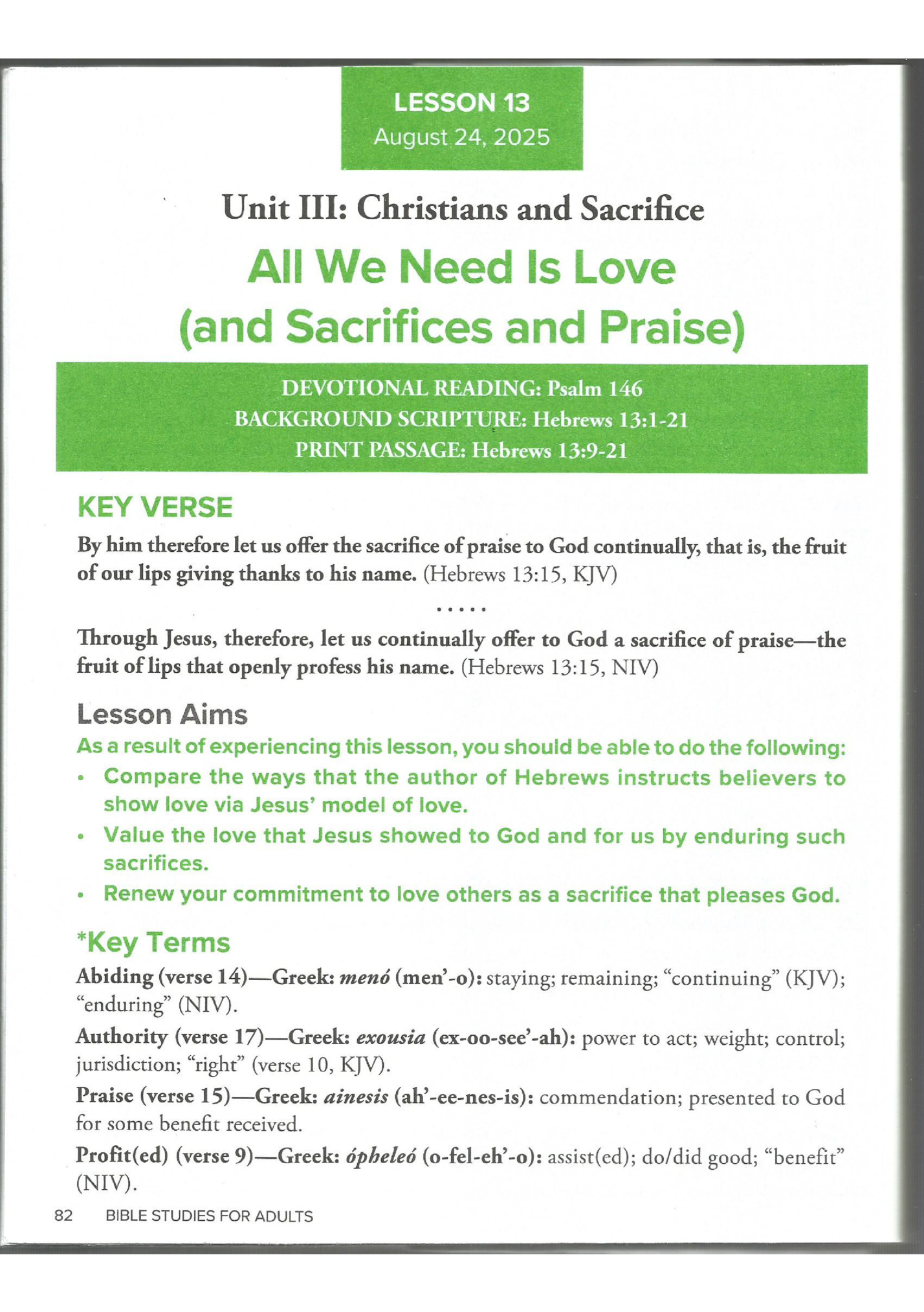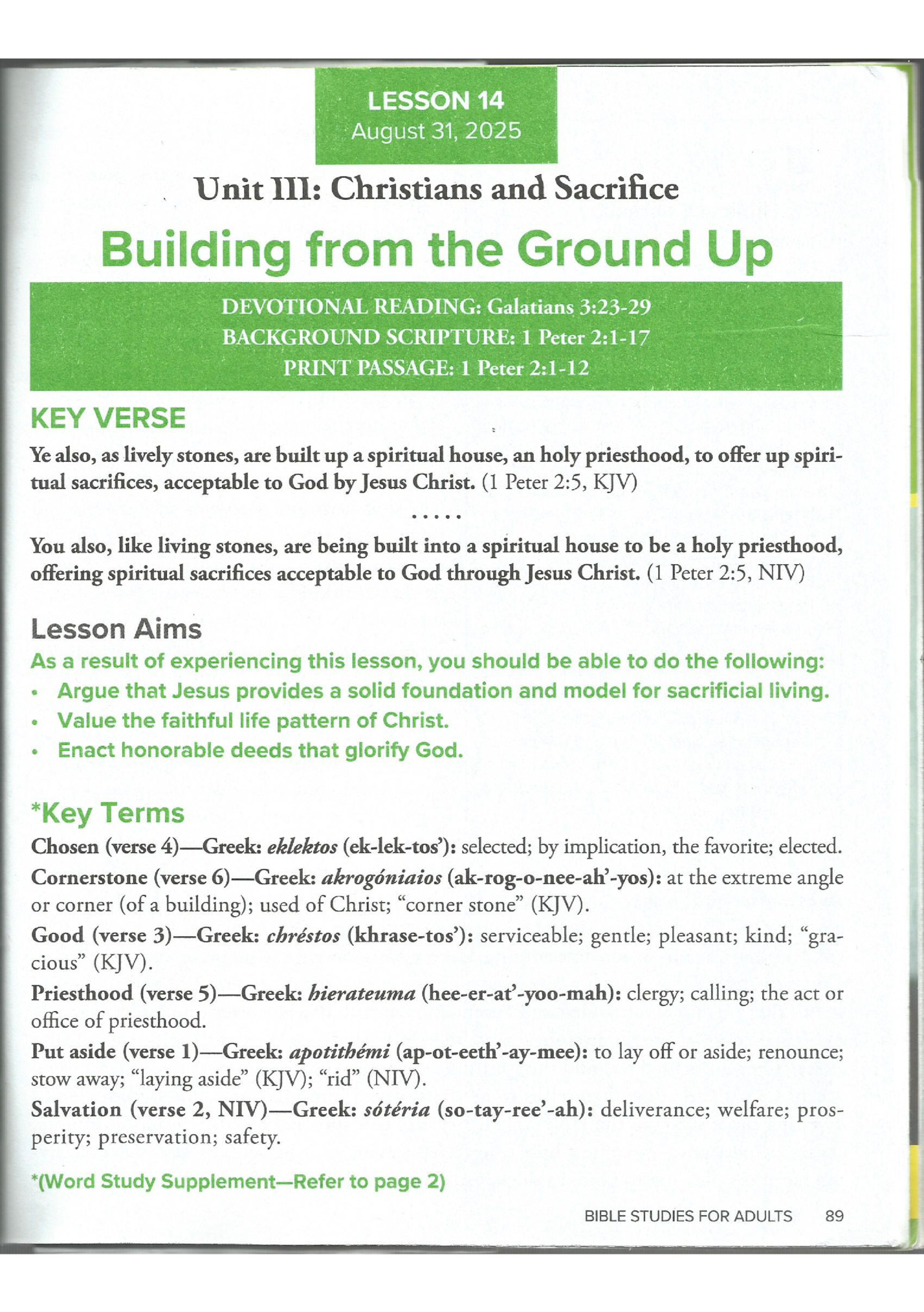 Adult Sunday School Lessons 4/5 Aug 2025