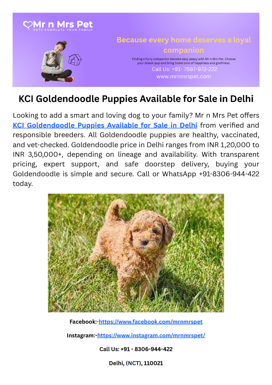 KCI Goldendoodle Puppies Available for Sale in Delhi