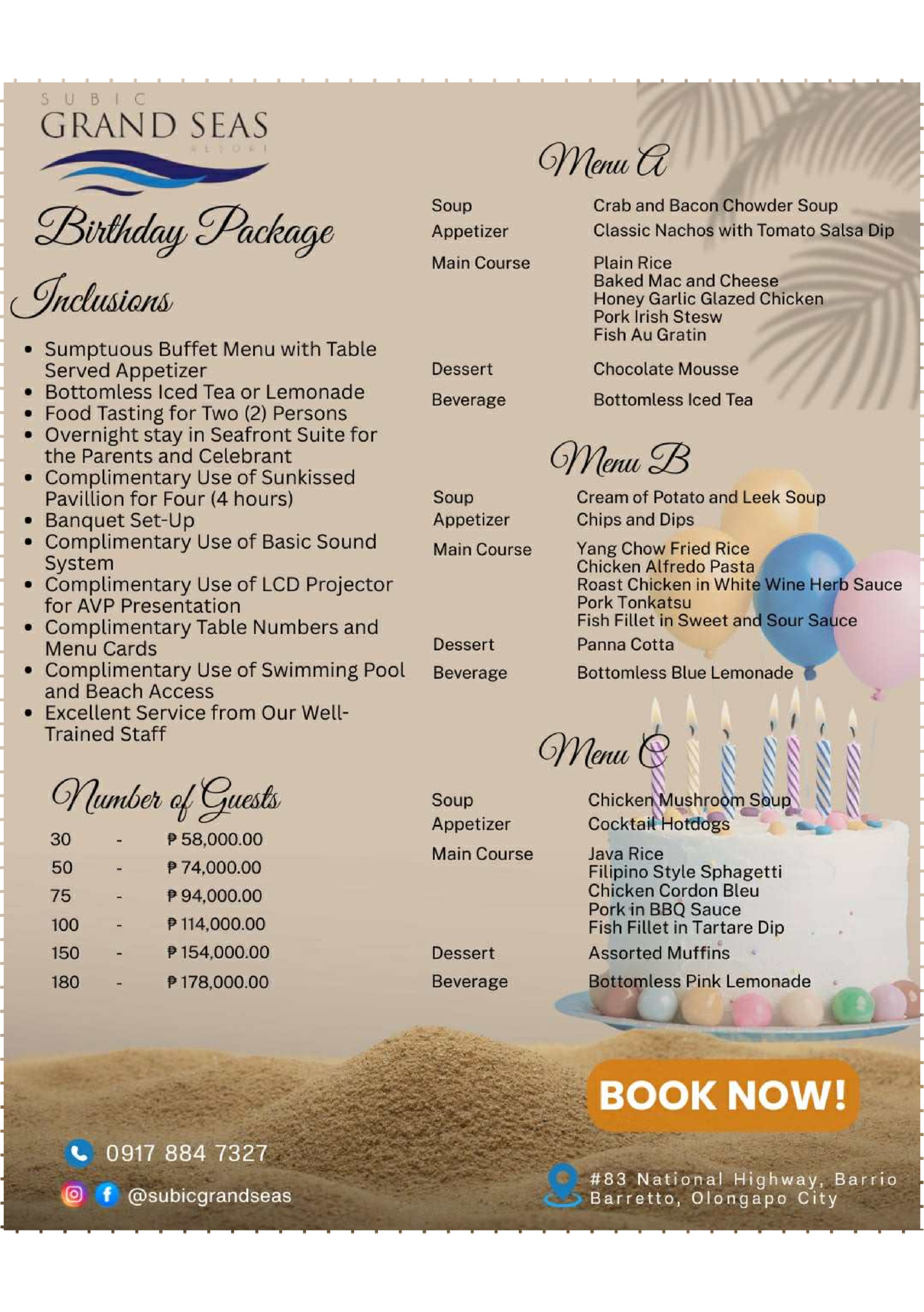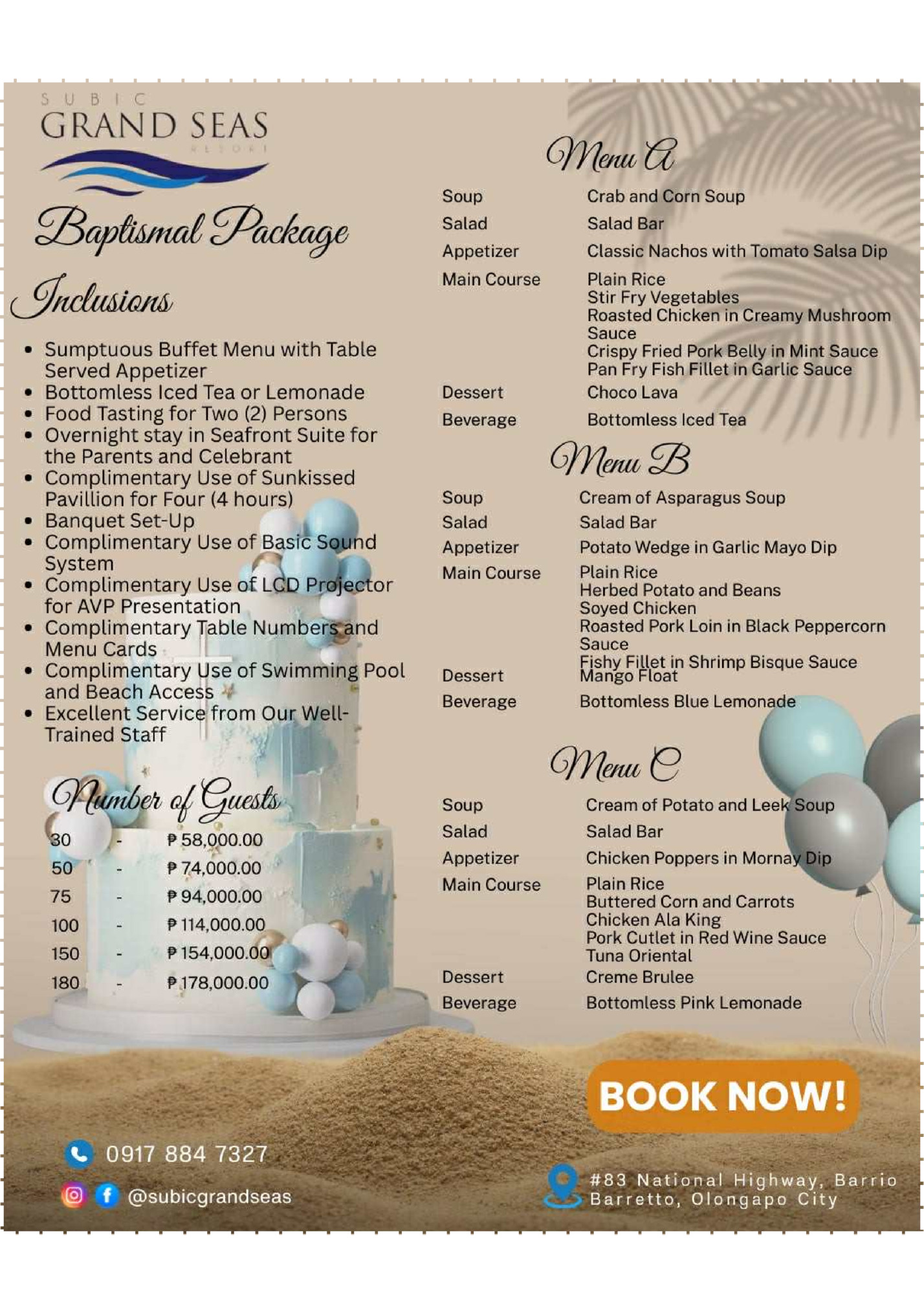 reach us through the following: subicgrandseasresort@gmail.com #83 National Highway, Barrio Barretto, Olongapo City 0950-856-34 / 0917-844-7327