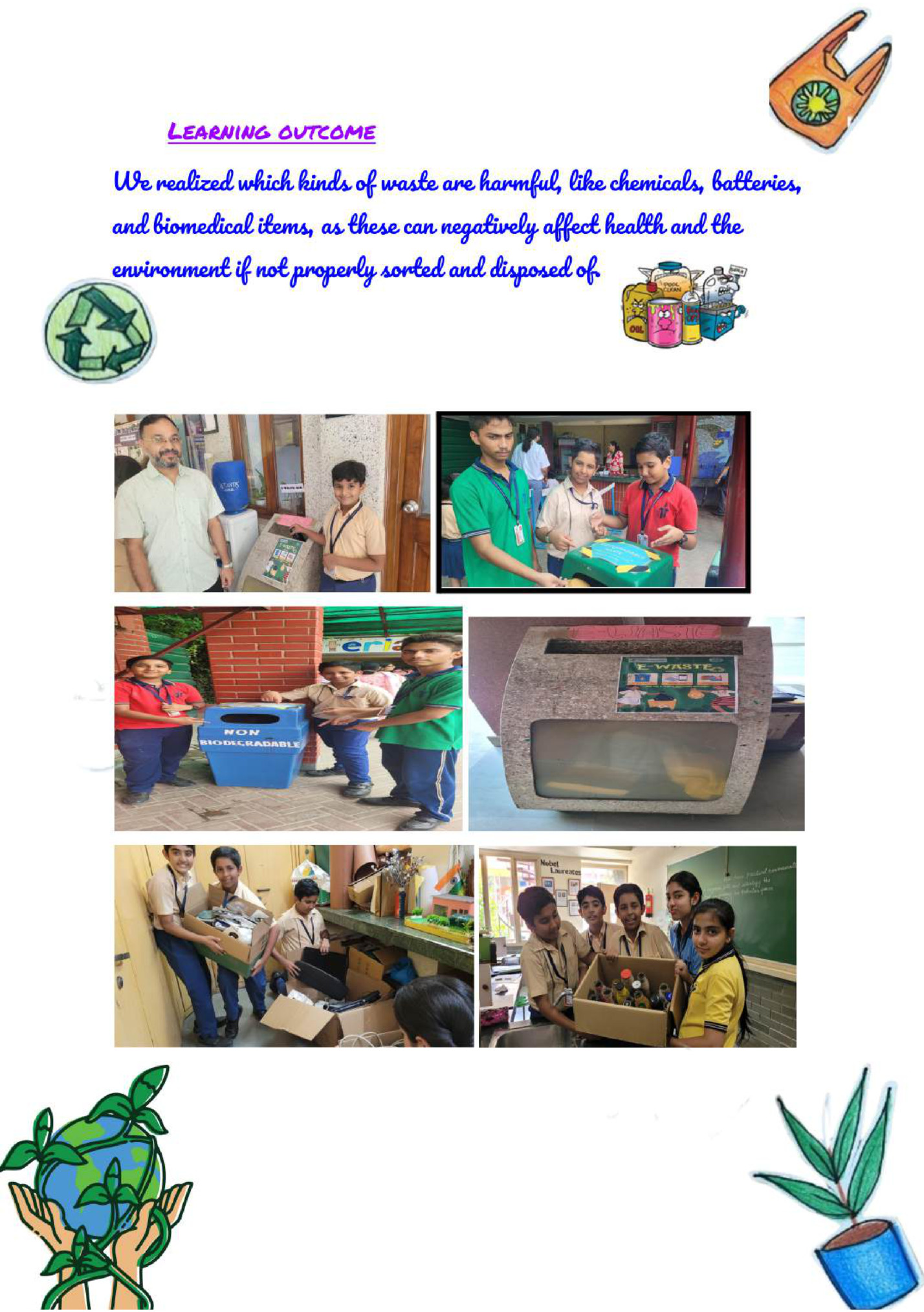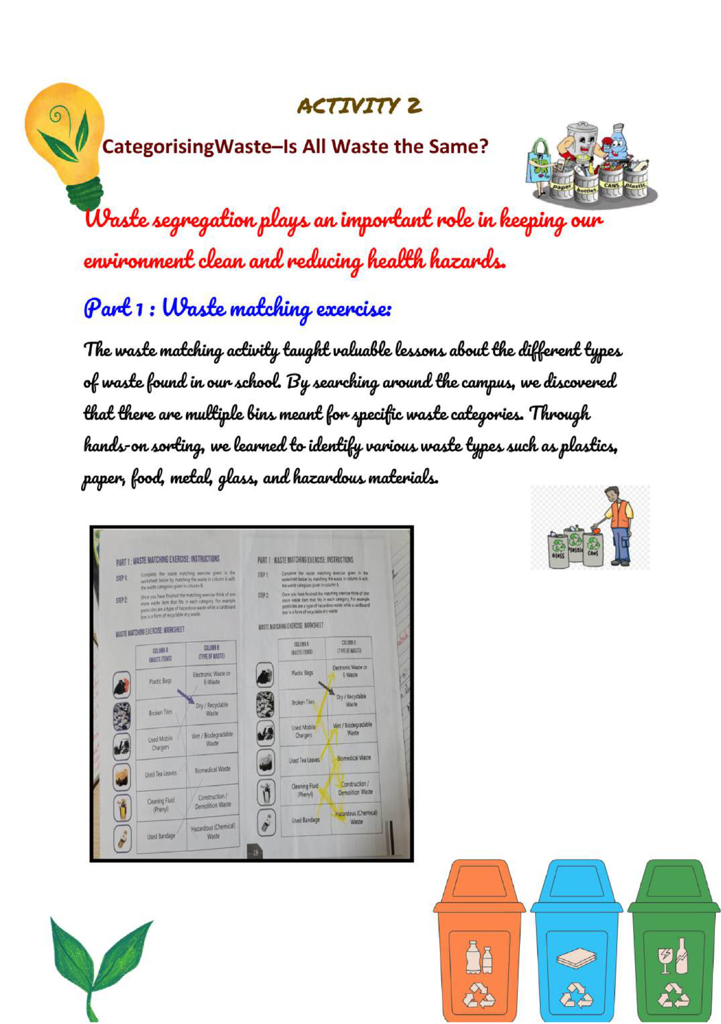 Part A: Understanding Our Relationship with Waste Compulsory Activity 1. Waste Scavenger Hunt 2. Categorizing waste-Is it all the same? 3. Where does waste go and why is it a problem 4. Segregating waste and composting 5. The ‘R’s of waste for a Zero waste school Part A Elective Activities. 1. Then and now 2. Agriculture and waste Reflection of interview Agricultural waste put to use in modern times -QUDRAT Part B compulsory activity – essay Moving communities towards Sustainable Waste Management-- A road map to change