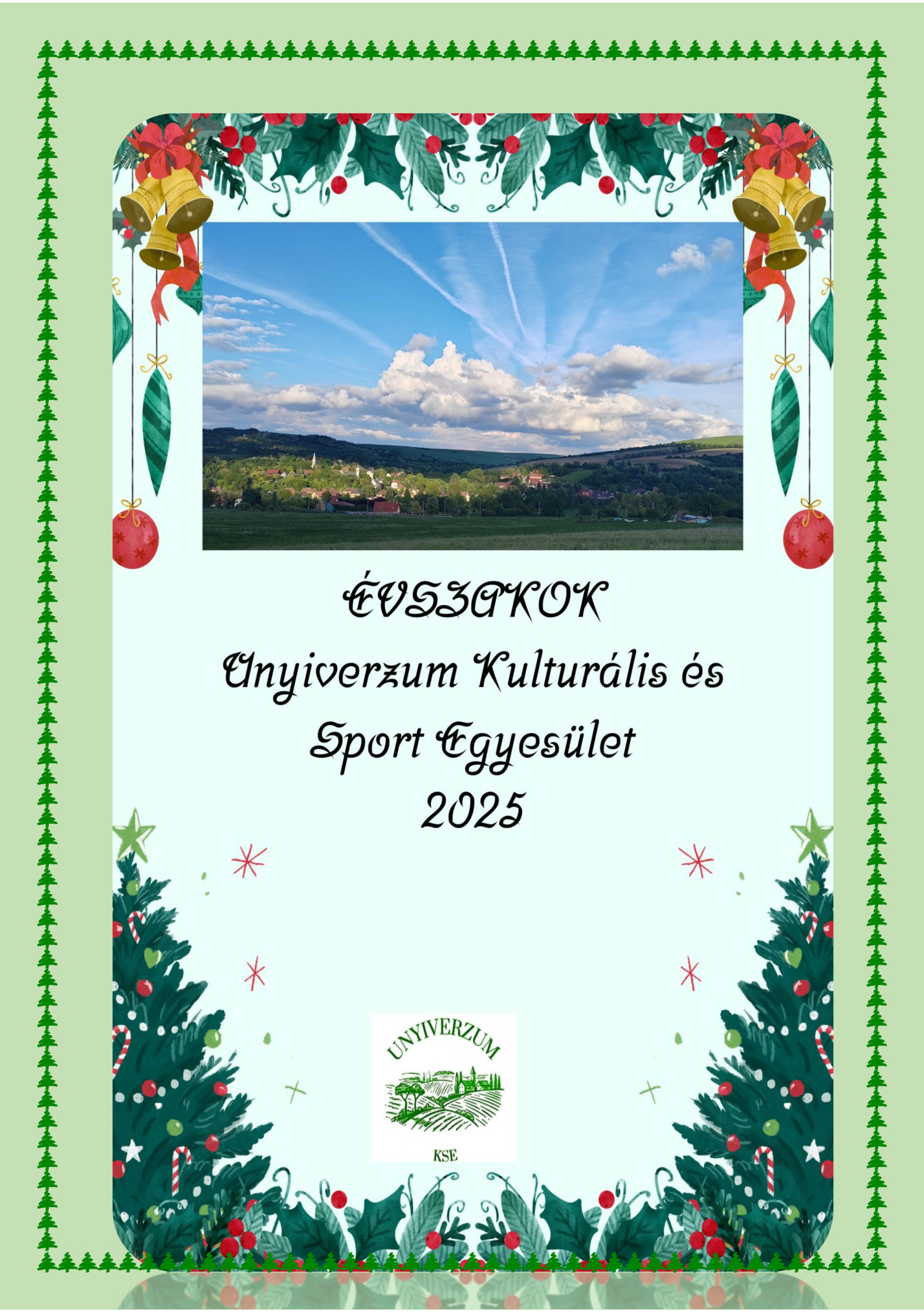de sok örömet szerez minden szervezőnek, és reméljük, hogy a látogatóknak és résztvevőknek is. És közben szövődnek a kapcsolatok, barátságok. Minden hónap utolsó szombatján 17:00 órától pingpongozás az egyesületi tagokkal. Tervekben szerepel demencia megelőző program, reméljük sikeresen elindul jövőre. „Jó legyen ide haza jönni „ Néhány gondolat a 2024 januárban alakult Unyiverzum Kulturális és Sport Egyesületről. Először is a nevünkről. Nem saját ötlet, de nagyon megtetszett nekünk, mert utal a Mindenségre is, meg kis falunkra is, és így kerek a világ. Nekünk az Univerzumunk közepe Úny. Nem vagyunk sokan, de sok mindennel foglalkozunk. Közös célunk, hogy aki itt lakik, érezze jól magát. A falu szépítése, ünnepek előtti díszítés, ami más átutazóknak szemet gyönyörködtető. Mert Únyon ez is van! Egy szóval jó legyen ide haza jönni. Az is célunk, hogy mások is szívesen jöjjenek hozzánk. Mi már jól érezzük magunkat, mert elég sok programot csináltunk az elmúlt majdnem két évben. Ezek megtekinthetők a facebook oldalon, amit tisztelettel ajánlunk megnézésre: Unyiverzum Kse. Ha így telik el néhány év, már is azon vesszük észre magunkat, hogy igen jó ide haza jönni! Az is fontos, hogy egyesületünk nyitott. Akit érdekel jöjjön el beszélgetni, érdeklődni. Szeretettel várjuk a következő elérhetőségeinken: unyiverzumkse1@gmail.com. A célokat közhasznú tevékenységként, nyereség- és vagyonszerzési cél nélkül működő, közhasznú szervezet formájában végezzük. Egyesületünk tagdíjakból, adományokból tartja fenn magát. Unyiverzum KSE minden korosztályt vár tagjai közzé. Öröm kitalálni egy ünnephez kapcsolódó kis programot. Gondolkozni azon, hogy mi az ünnep lényege, hogyan lehet ráhangolódni énekkel, verssel? Mi az igazi mondanivalója: történelmi, néphagyományhoz kapcsolódik, vallási jellegű? Kik tudnának segíteni a magvalósításban: szereplők, díszítéseket ügyesen készítők, kézművesek, vagy éppen zenészek kellenének? Beszélni emberekkel, hogy ők is jónak látják-e a mi elképzelésünket. Az se mellékes kérdés mikor, hol legyen az esemény és hogyan jut el az információ lehetőleg mindenkihez. Üdvözlettel: UNYIVERZUM KSE ~3~