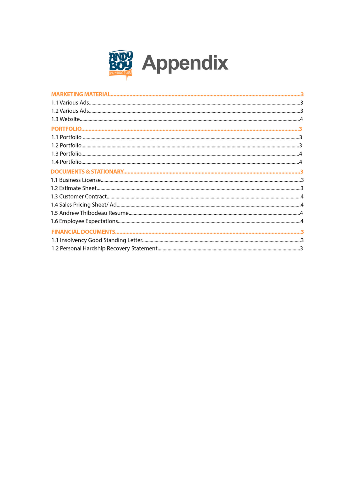 Andy Boy Painting Plus: Business Plan