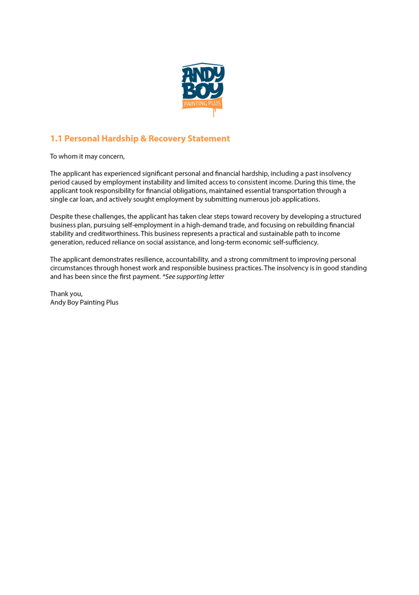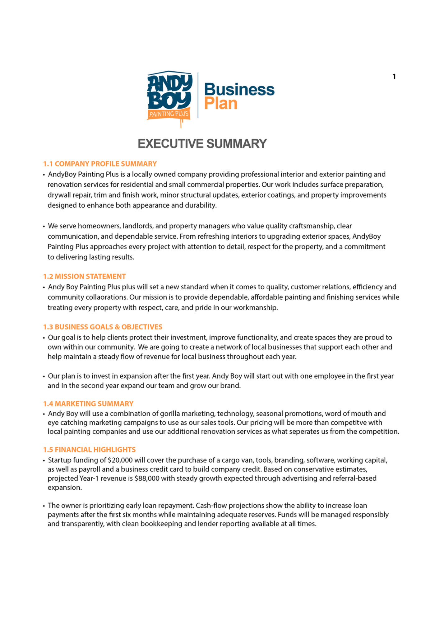 Andy Boy Painting Plus: Business Plan