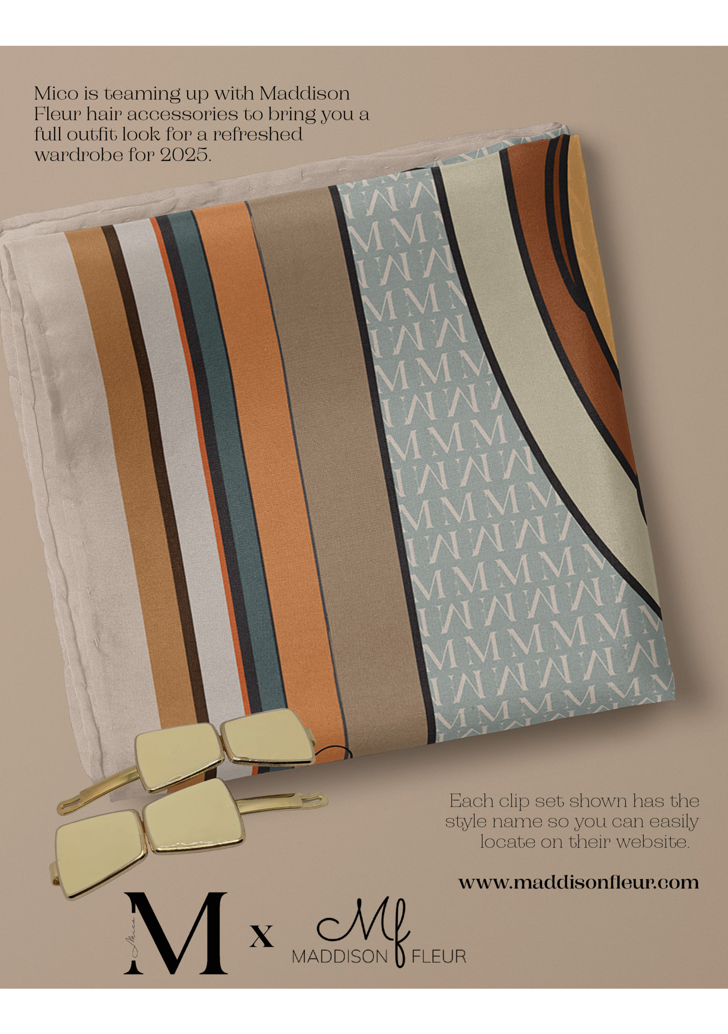Fleur hair accessories to bring you a full outfit look for a refreshed wardrobe for 2025. Each clip set shown has the style name so you can easily locate on their website. www.maddisonfleur.com x