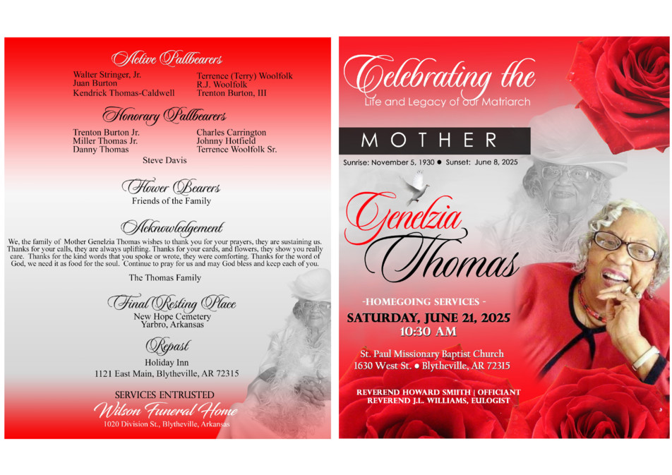 Genelzia Thomas Funeral Program