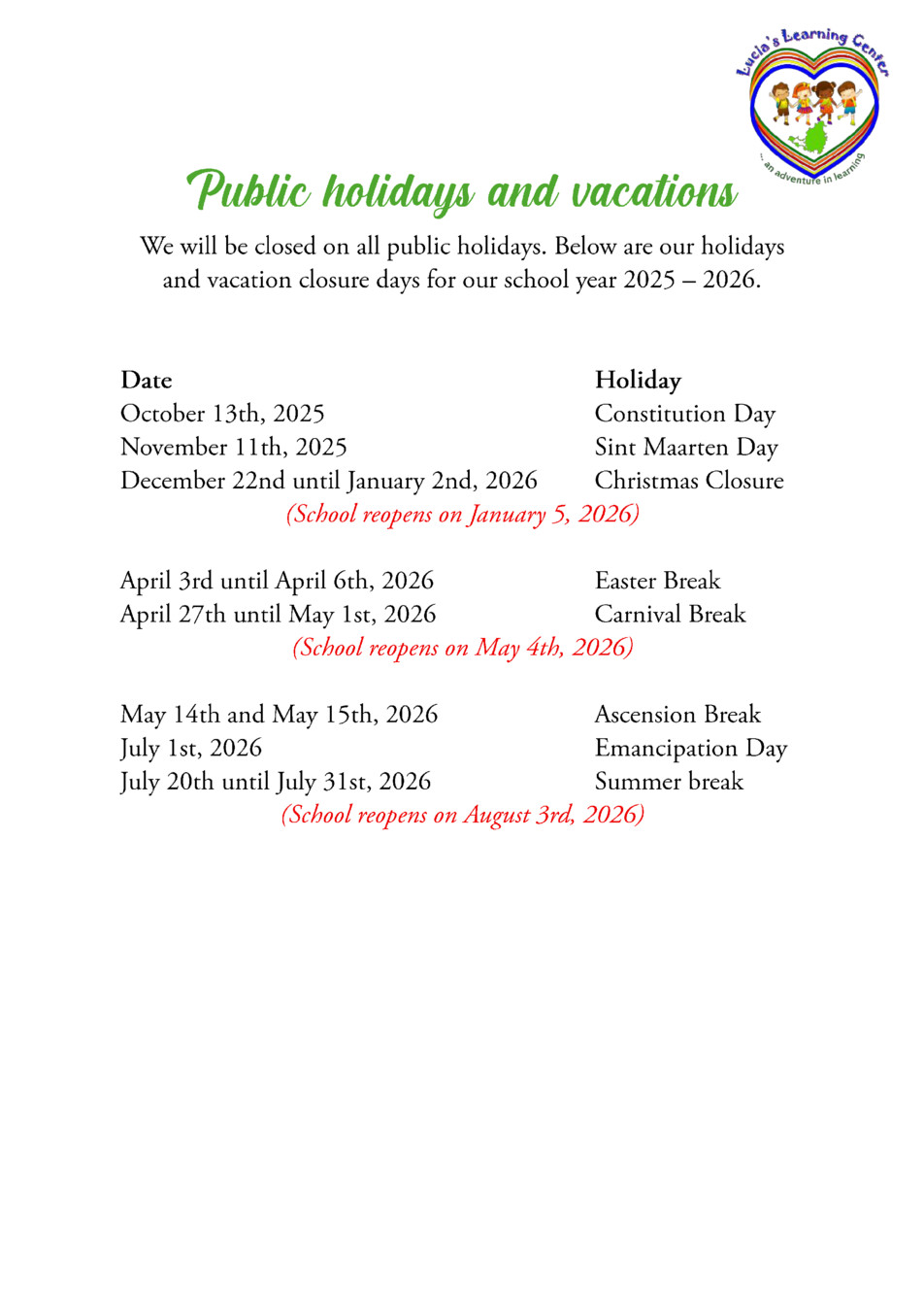 Holidays 2025