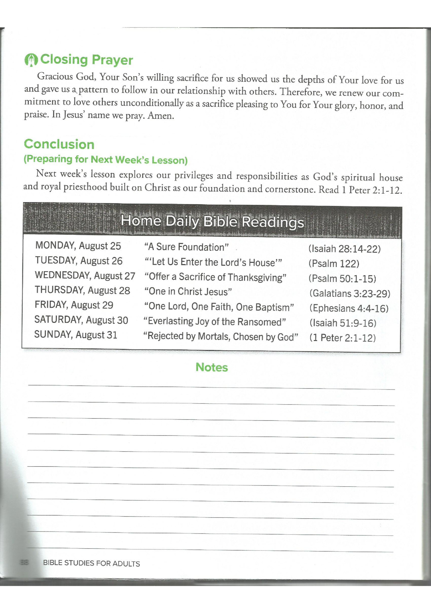 Adult Sunday School Lessons 4/5 Aug 2025