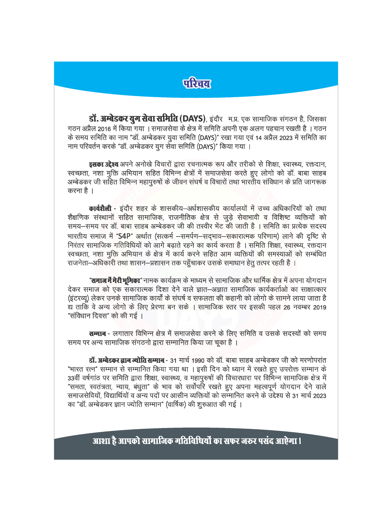 Dr. Ambedkar Yug Seva Samiti (DAYS) Activities in Book Format