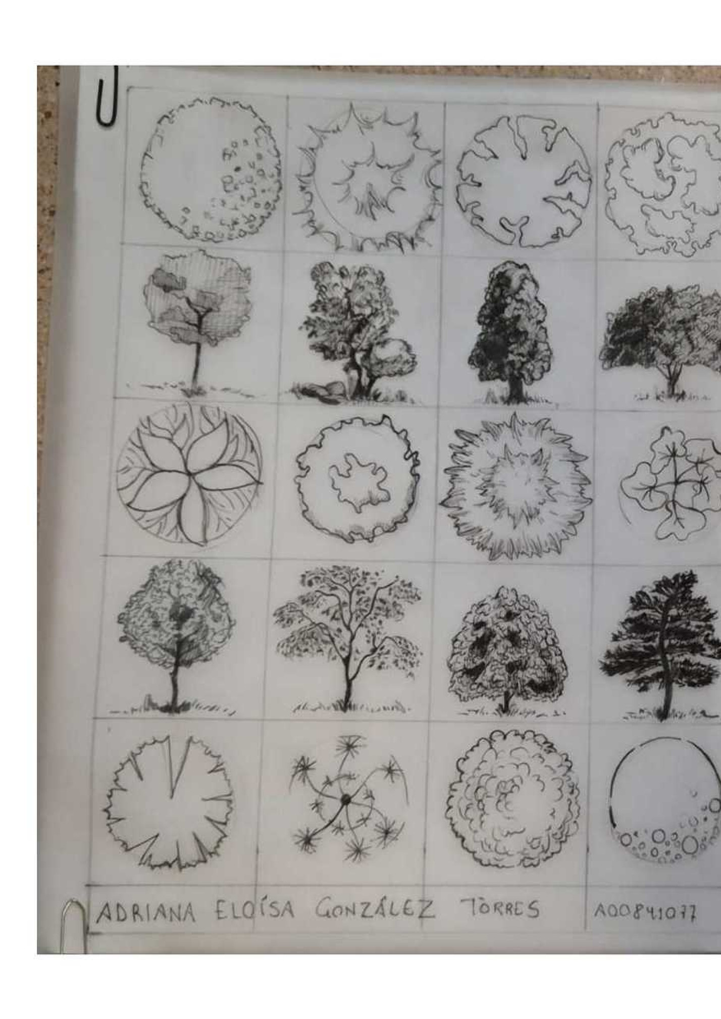 Actividad 3 y 4. Árboles en elevación y en planta y escalas humanas con tinta china en