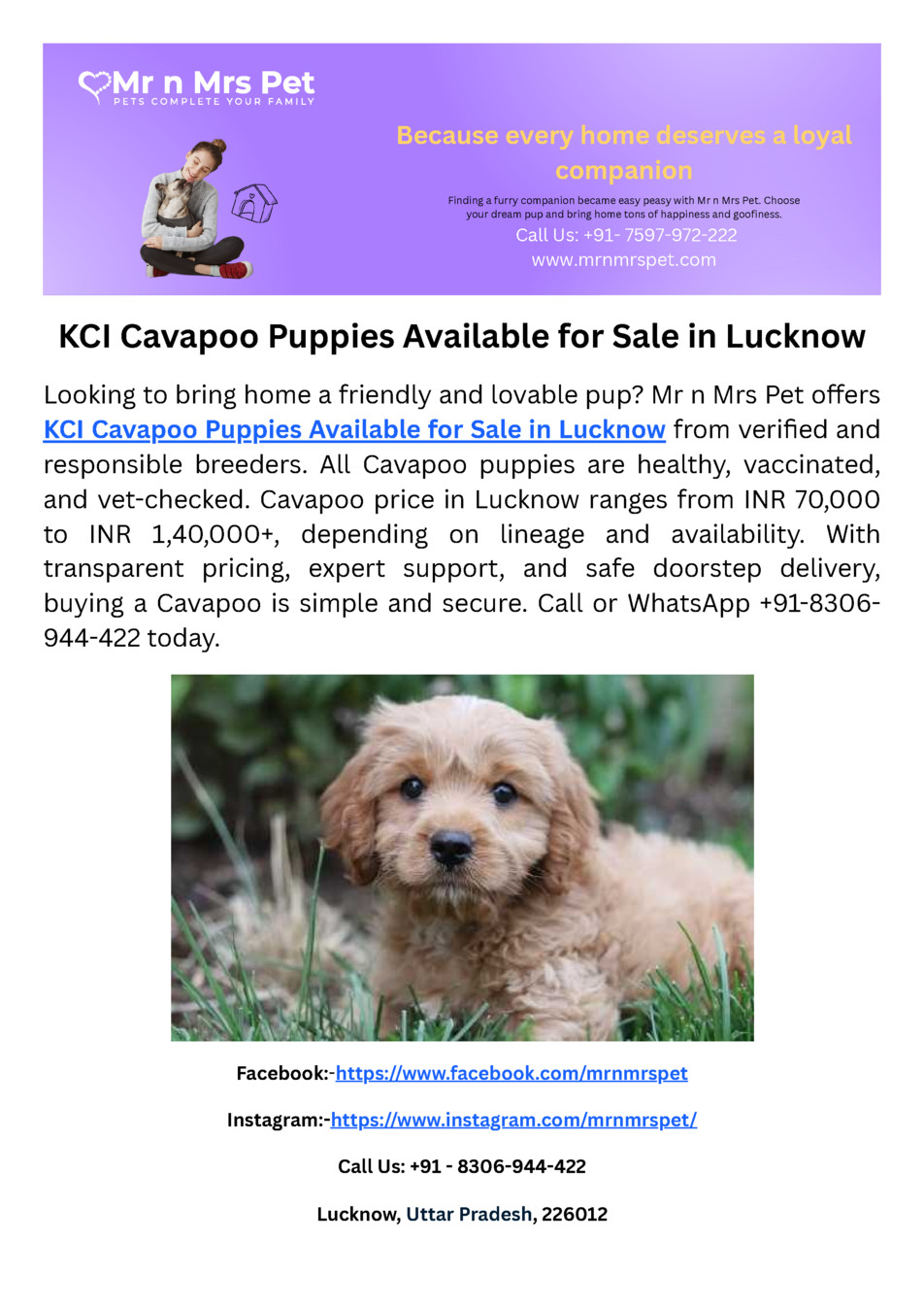 KCI Cavapoo Puppies Available for Sale in Lucknow